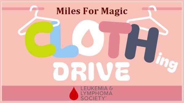 Donate clothing, shoes, linens, and more to help the MilesforMagic team support the Leukemia & Lymphoma Society. Drop off at William Wilt Complex or email for pick-up by October 24.